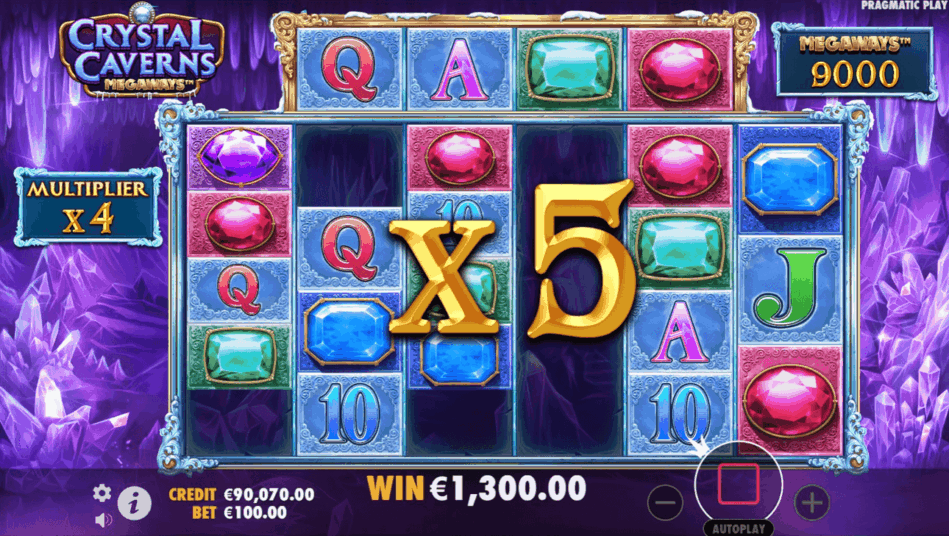 Maxwin di Crystal Caverns Megaways adalah 10.000x dari taruhan.