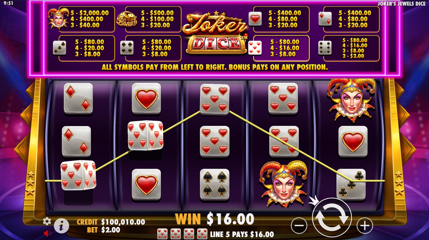 Coba Joker's Jewels Dice secara gratis! Nikmati versi demo tanpa repot—langsung main saja!