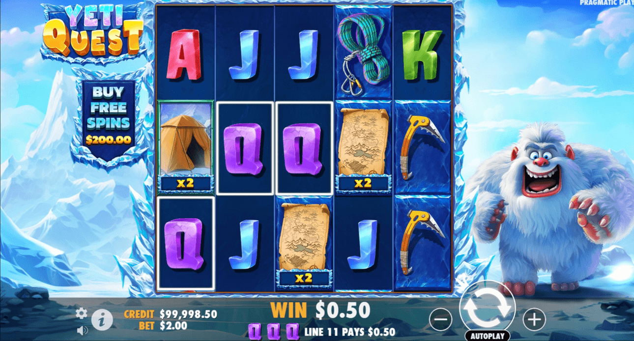 Maxwin di Yeti Quest adalah 5.000 kali taruhan pemain.