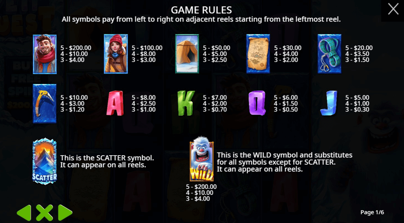 RTP dari Yeti Quest adalah 96,06%, meningkat sedikit menjadi 96,07% jika membeli Bonus Free Spins.